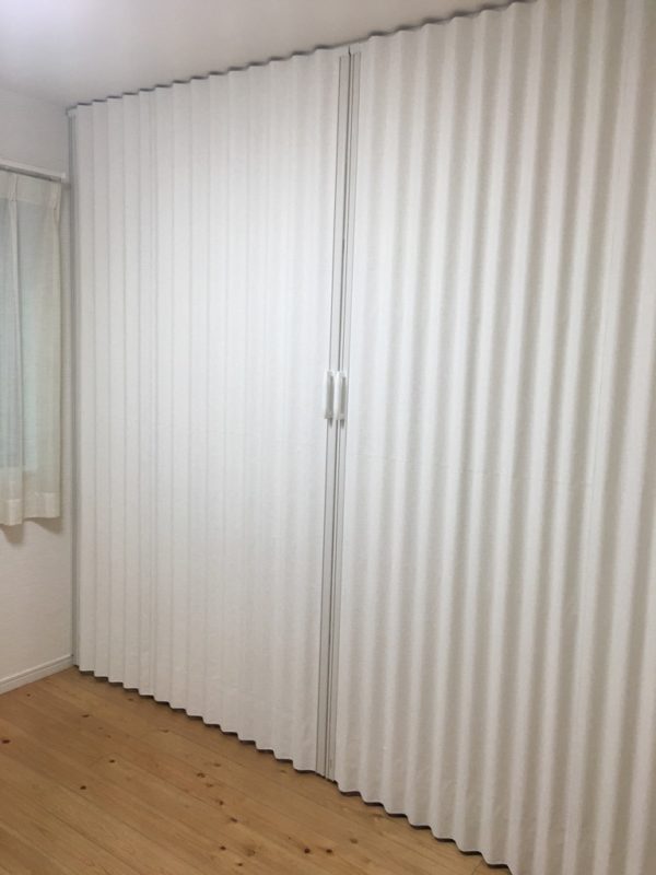 タチカワブラインド プレイス 引戸 フラットガイドレール階段を上がったリビングの入口に引き違いの2枚引戸を取付ました。今までは入口に間仕切りがなくエアコン効率が悪かったので、これからの暑くなる時期にはエアコンの効きが良くなると思います。